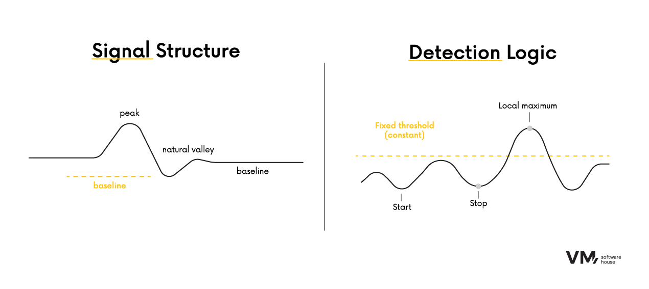 Zespół projektowy zaprojektował kompletny algorytm detekcji pików, oparty na logice analizy sygnałów, zoptymalizowany do działania na urządzeniach z ograniczonymi zasobami obliczeniowymi.